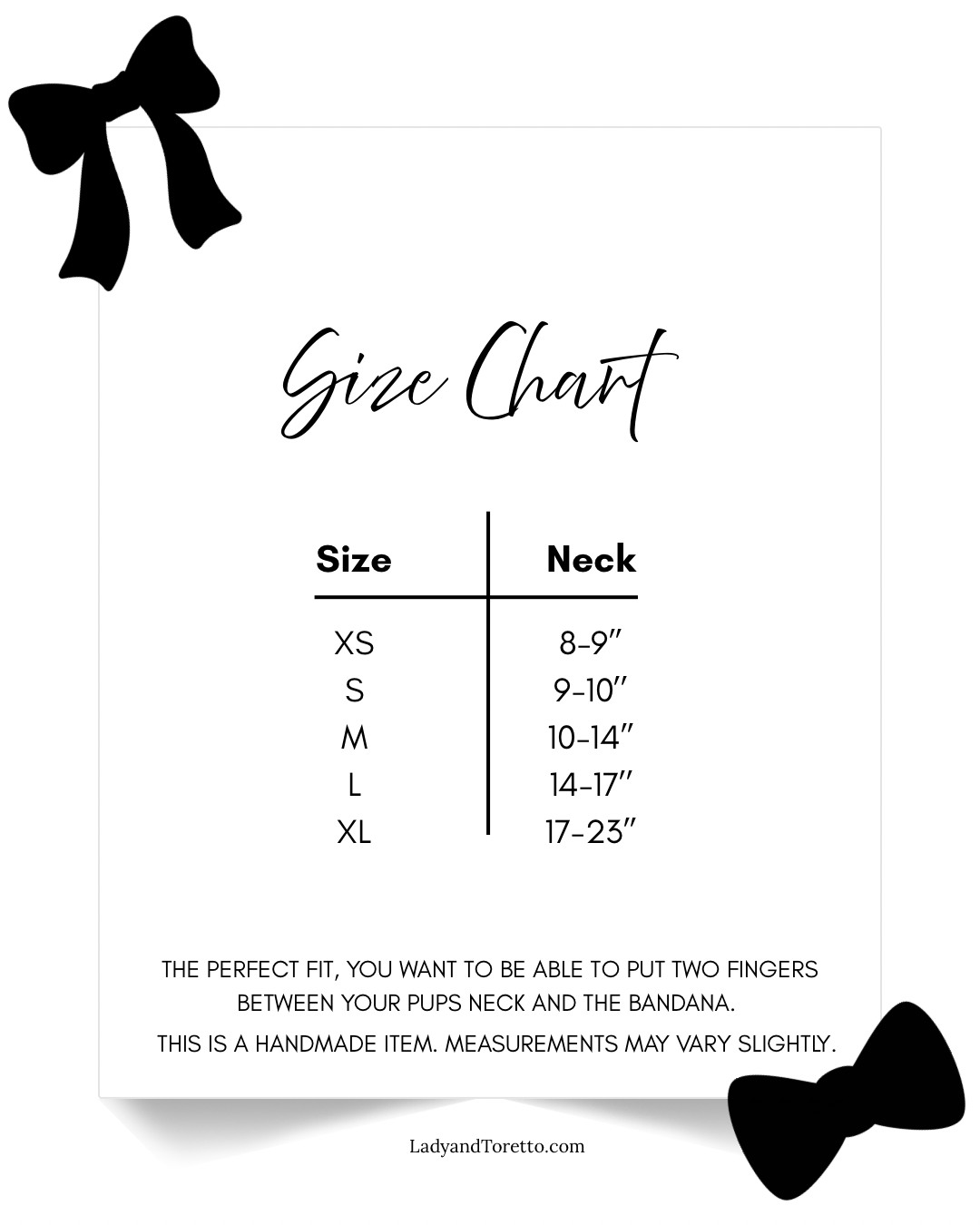Once your items leave our hands, Lady & Toretto is not responsible for misuse. Some products may pose a choking hazard, so please supervise your pet while wearing or using any accessories. It is the purchaser’s responsibility to determine if each product is suitable for their pet.